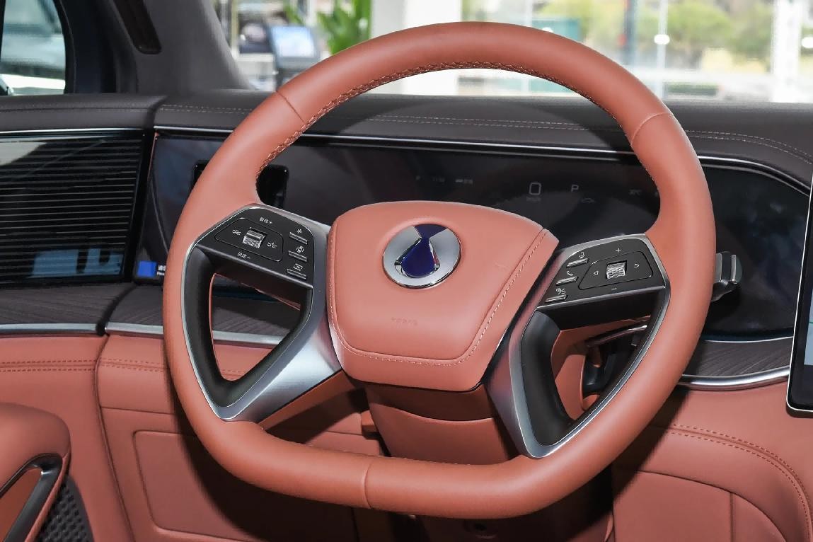 底盘表现是这款车的一大亮点。云辇-A智能空气车身控制系统配合前双叉臂/后五连杆悬架组合,提供了扎实的行驶质感。在城市道路行驶时,悬架能够有效过滤路面细碎震动,遇到井盖或减速带时,车身姿态控制得体,没有多余的弹跳。高速过弯时悬架支撑性足够,车身侧倾控制在合理范围内。iCCT舒适控制技术有效抑制了起步抬头和制动点头现象,提升了乘坐舒适性。三电机扭矩矢量控制+9种驾驶模式(经济/舒适/运动/竞速/泥地/沙地/雪地/雨雪内八/智能地形)让车辆能够适应各种路况需求。后轮双电机独立转向技术让这款大尺寸SUV变得灵活好开,转弯半径仅4.65米,这在同级别车型中是个不错的成绩。在城市窄路调头或停车场挪车时,能明显感受到后轮转向带来的便利性。易三方整车智能控制技术平台发挥了重要作用。iCVC底盘矢量控制功能开启后,车辆在变道超车时更加稳定,方向盘手感扎实,指向精准度值得肯定。制动系统采用六活塞自研定钳,制动脚感线性,制动力释放均匀,给人足够的安全感。在特殊路况的通过性方面,智能地形系统能够自动识别路况并调整车辆设置。在泥地/沙地模式下,系统会调整动力输出特性和悬架高度,提升通过能力。雨雪内八字模式通过模仿滑雪姿势,在低附着力路面上提供更好的稳定性。实测在冰雪圆环以77km/h速度发生爆胎时,车辆依然能保持稳定行驶,展现出不错的安全性能。整车静谧性表现突出。通过造型优化/整车隔声密封提升/外造型流场控制等技术手段,在120km/h时速下车内噪声控制在62分贝以内,达到了不错的静音水准。定眩智能防晕车系统通过云辇智能车身控制系统为核心,深度融合转向/制动与电驱系统,实时监测车辆状态,通过毫秒级调节阻尼/刚度和车身姿态,显著抑制加减速时的俯仰/过弯时的侧倾以及颠簸路段的抛跳感。搭配舒适制动功能,模拟老司机线性柔和的刹车手法,可有效避免频繁启停的点头现象。隔音降噪方面,全车采用双层隔音玻璃(除后风挡),配合高定针织绒面顶棚材质,有效降低了风噪和路噪的传入。帝瓦雷音响系统还具备主动降噪功能,进一步提升了车内静谧性。